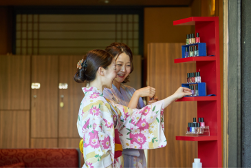 また、ゆわでは色浴衣の無料貸し出しサービスがあります。色とりどりのかわいい浴衣の中からお気に入りを選んで着替えたら、館内や温泉街での記念撮影を楽しんでみては。館内にはマニキュア20色を揃えたネイルコーナーもあり、選んだ浴衣に合わせて爪先までおしゃれに彩ることもできます。女子旅ならではの「お揃いコーデ」で盛り上がれば、旅の思い出がさらに華やぎますね。