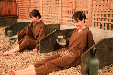 15種類もの薬石が敷き詰められた空間で、ミストたっぷりの温泉蒸気浴を体験すれば、大量の汗とともにデトックス効果抜群と好評です。お花見で歩き疲れた体も芯から温まり、代謝アップやお肌ツルツル効果も期待できます。