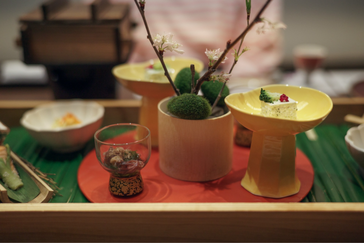 夕食は料理長こだわりの創作和会席をご用意。山梨の旬菜や地元食材をふんだんに取り入れ、見た目にも美しい会席料理は「美味しいだけでなく目でも楽しめる」と評判です。